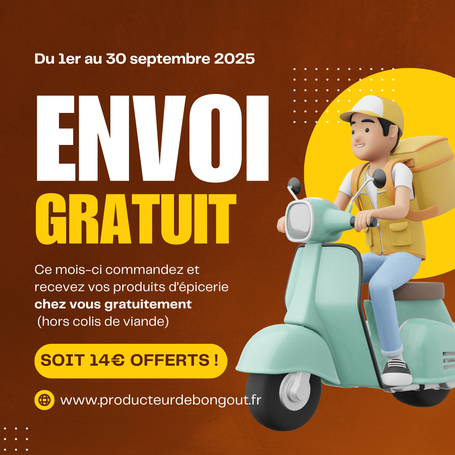 C'est simple : On vous envoie votre commande chez vous en France par transporteur (hors colis de viande) et en plus ce mois-ci - sept. 2025